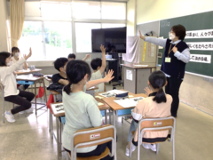 社会福祉協議会の方に来ていただき、福祉についての話をしていただきました。最初は、子どもたちの思う「ふくし」についてグループワークをしました。障がい者やお年寄りに関すること、みんなが笑顔でいれること、知ることと支えることがあることなど様々な意見が出てきました。 実際に社協の方の話を聞いたり、サロンで行っているゲームをしたりして、福祉についての学習を深めました。
